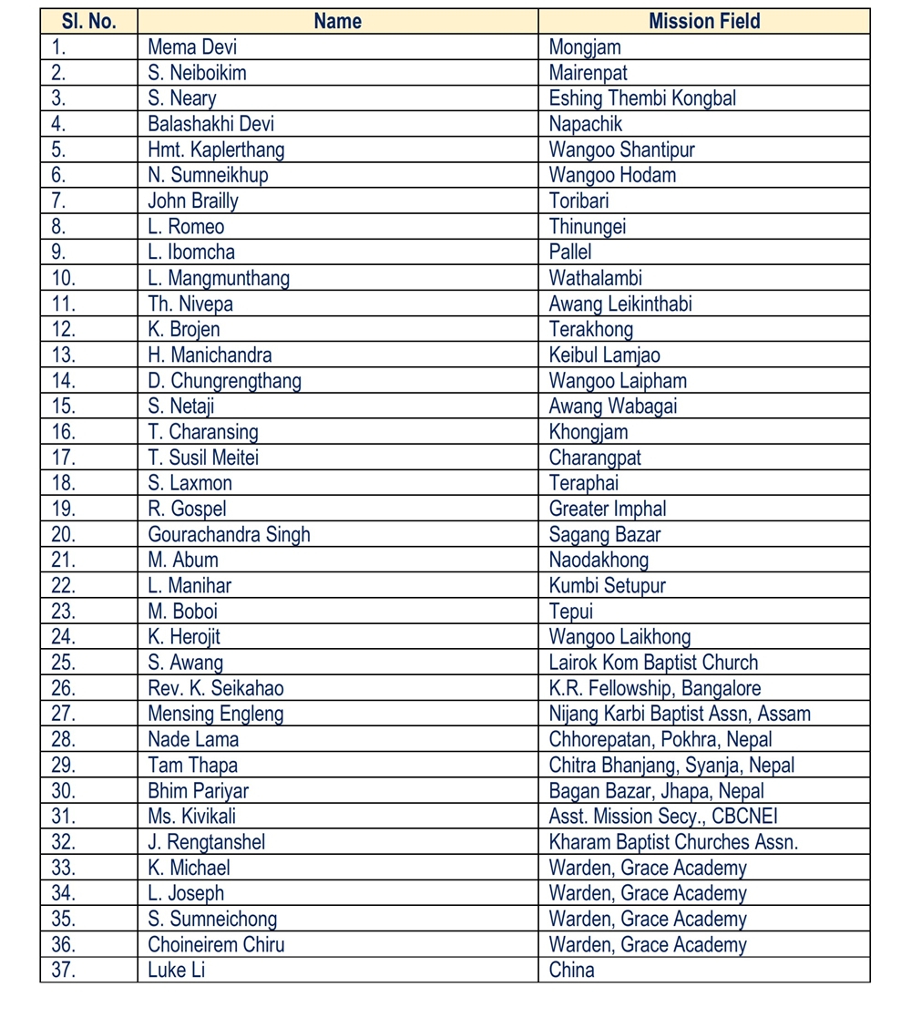 – Currently, under the leadership of Rev. L. Yanglerthang, KRBCA is partnering with Seva Bharat, Mission India through CBCNEI, and Assam Regiment Centre Church, Shillong.