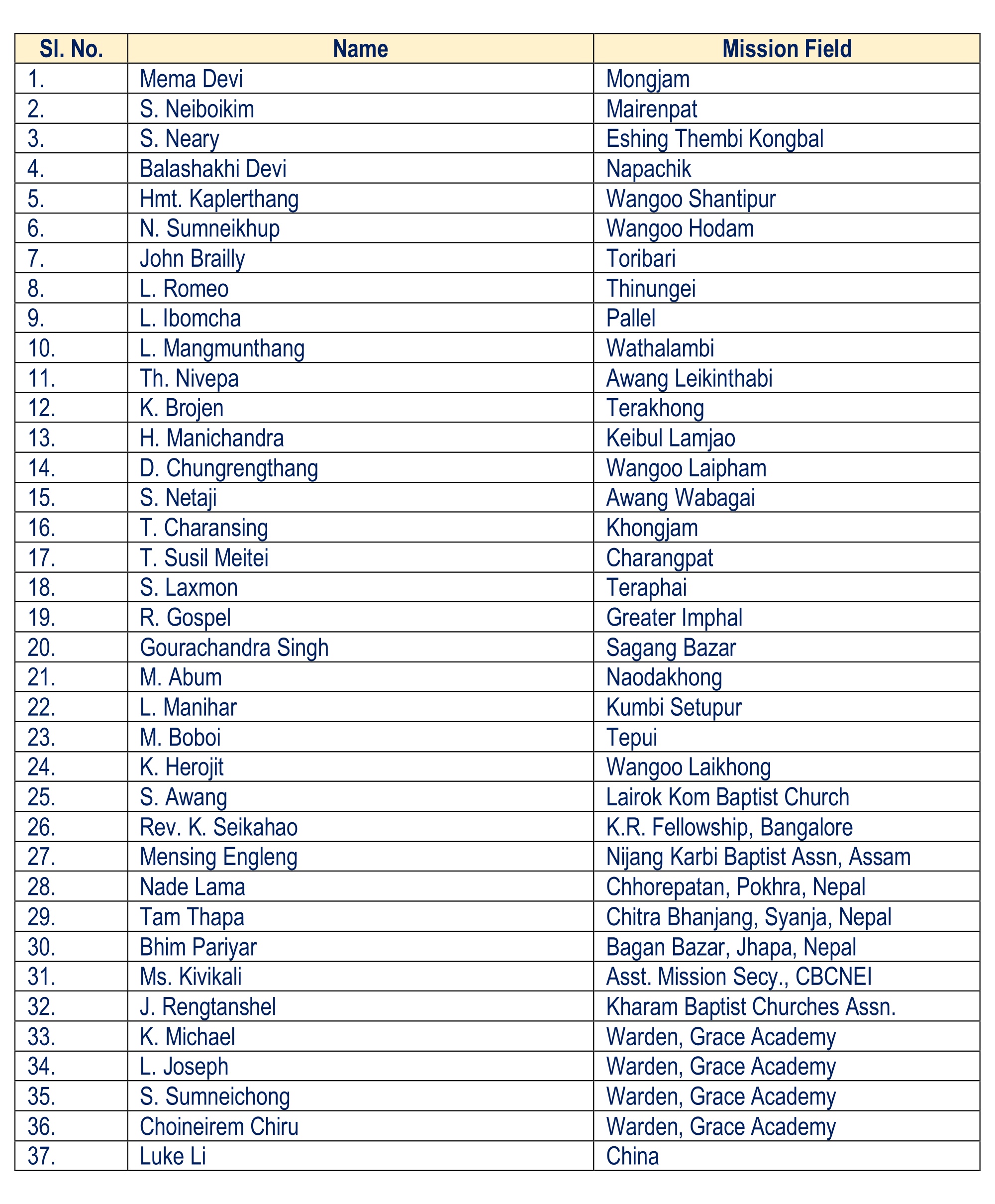 – Currently, under the leadership of Rev. L. Yanglerthang, KRBCA is partnering with Seva Bharat, Mission India through CBCNEI, and Assam Regiment Centre Church, Shillong.